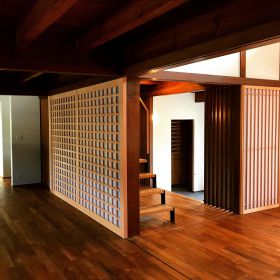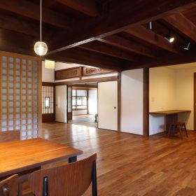 淡路島の長閑な田園風景の中に建つ、築60年以上経過した古民家の大規模な改修計画。初めて現地を訪れ建物を見せていただいた時の感想は、そのままで、時を重ねてきた美しさとしっとりとした佇まいがあるなというものでした。内部を見せていただくと、桜や肥松など現在では希少な上質の材が随所に使われており、調査を進めていくと材の傷みも比較的少ない状態だということもわかりました。古民家の持つ伸びやかな空間や佇まい、使われているそれぞれの素材をできるだけ次世代へときちんと残せるよう再利用し、この古民家の良さをシンプルに表現することも大切に考えながら全体の再計画を進めていきました。