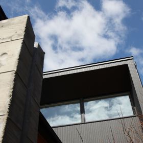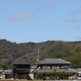 市街化調整区域内に建つご実家に隣接する敷地。田園風景の向こうに広がる山並み、この自然豊かな環境を新居の計画地に選ばれたクライアントご夫妻。懐かしい風景の中に建つこの家は、敷地 間口7m余り、奥行30mのとても細長く高低差ある敷地でした。この地の良さを活かしながら、周辺との程よい距離感を模索するところから、家づくりは始まりました。