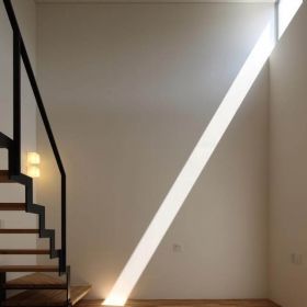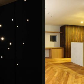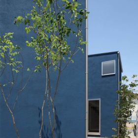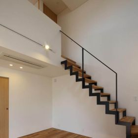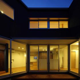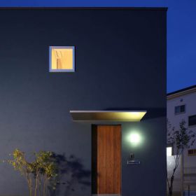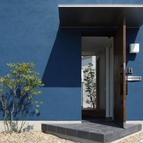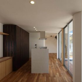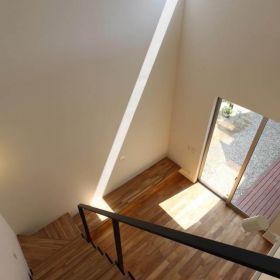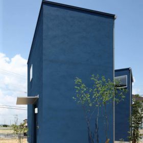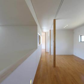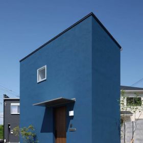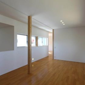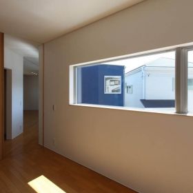 元々は田畑だった場所が、急速に宅地化が進む、周辺環境に対して完全に閉じるのではなく、単純な形に角度をもたせ緩やかに閉じつつ、開く事で、内外の視線を操作し 内部空間に奥行と広がりを与えています。