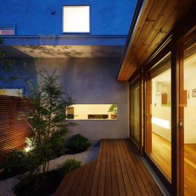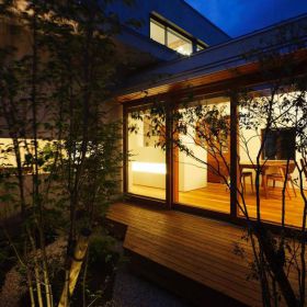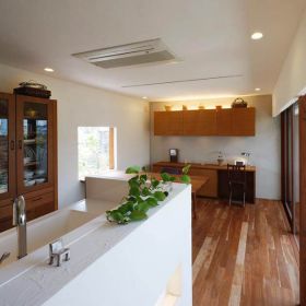 閉じる事で光が満ちる空間、開く事で日々の喧噪から解き放たれる空間。内と外のつながりをデザインする事で、キッチンや水廻りからも一年を通して『四季』を感じられる暮しの場所となっています。