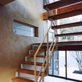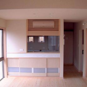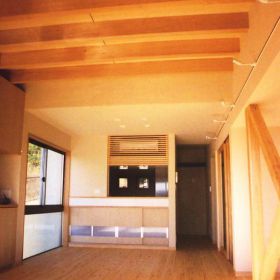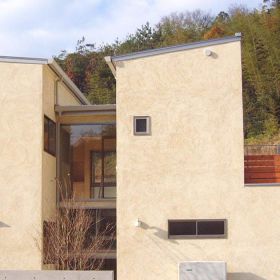 周辺は宅地造成が進行中で建物の設計中にも次々と建売住宅が立ち並んでいくような状況の中、今後、建込むことが予測される東側に中庭を配することで、光りや風が将来も安定して建物内部に届けられるように配慮している。また、中庭の樹々や周囲に残る自然の景色が、日々の生活の中に四季の彩りを添え、豊かな時を刻むことを願い細部及び全体を計画しました。