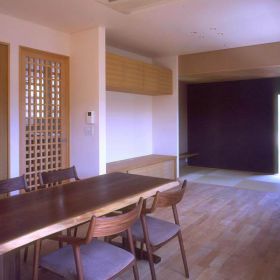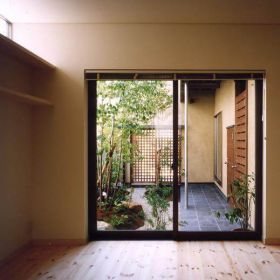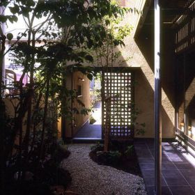 敷地は、数十年前に分譲された画一的な住戸配置の並ぶ閑静な住宅地。平面的にH型のプランとし、二つの中庭を設けた事で、住まい手それぞれのプライバシーとコミュニケーションあり方を程良く調整している。