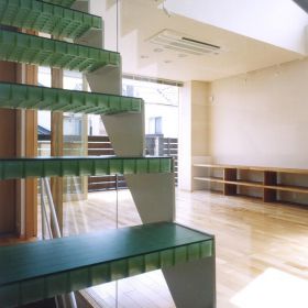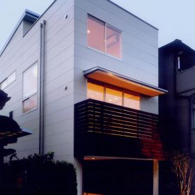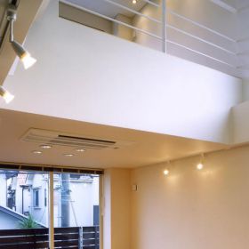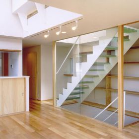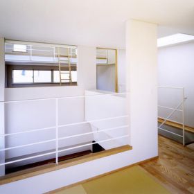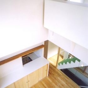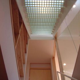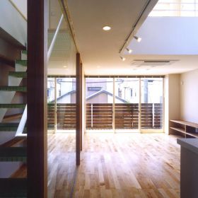 トップライトから光が降り注ぐ階段スペースを建物中央に配置し、光・風・気配などが交錯する「光の庭」をもつ家。