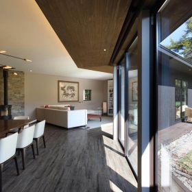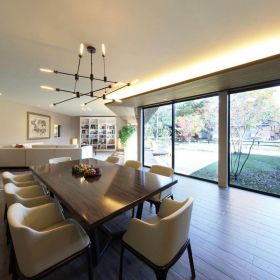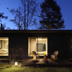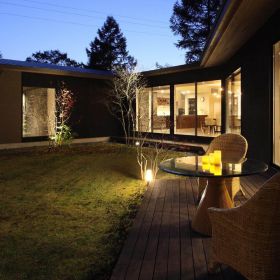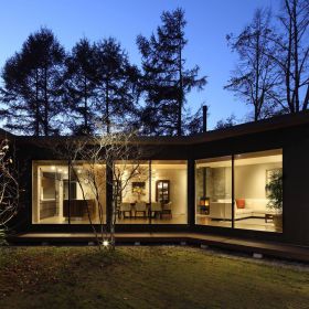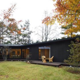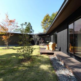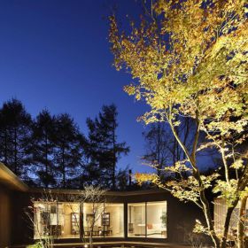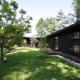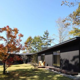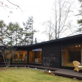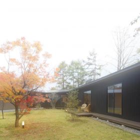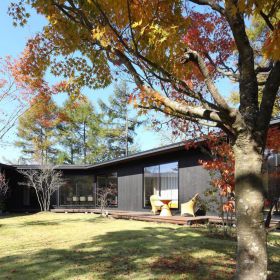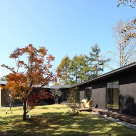 長野県、浅間山を望む景勝地である軽井沢の別荘計画。恵まれた周辺環境を生かす為、また、自然生息する樹木をなるべく残すよう建物形状・配置計画を進めました。建物は敷地を大きく取り囲むような変形の開いたコの字の形状とし、周囲の環境との関り方を区別できるような建物形状としています。