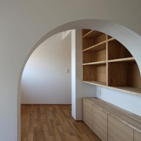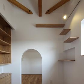 四季折々の風景を楽しむ1階廻りの間取りに加え、2階には、それぞれの個室をつなぐ動線上に眺望の良い『セカンドリビング』を計画しました。その側には趣味の書籍を保管する可動式書庫も併設しています。