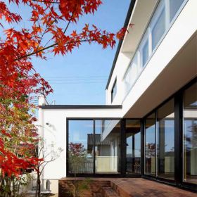 緩やかな坂のむこうに淡路島や海を望む立地、元々ご家族で住まれていた住宅を2世帯(3世代)で暮らす住まいへと建替える事になり、ご相談を受け家づくりがスタートしました。